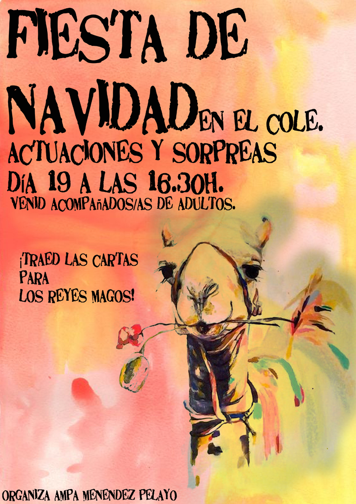 Fiesta de Navidad – 19 de diciembre, 16:30 en el salón de actos ¡Traed las cartas para los Reyes Magos! (De nuevo gracias a Teresa por los maravillosos carteles) Fiesta de Navidad 2016 Comparte: Haz clic para compartir en X (Se abre en una ventana nueva) X Haz clic para compartir en Facebook (Se abre en una ventana nueva) Facebook Haz clic para compartir en WhatsApp (Se abre en una ventana nueva) WhatsApp Haz clic para compartir en Telegram (Se abre en una ventana nueva) Telegram Me gusta Cargando... Relacionado