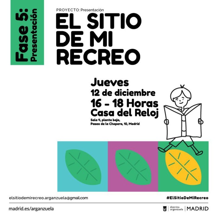 ¡Por fin llega el día de la presentación de El sitio de mi recreo! La presentación tendrá lugar el jueves 12 de diciembre de 16h a 18h en la Casa del Reloj (Sala 4, planta baja), en el Paseo de la Chopera 10. ¡Nos vemos allí! Comparte: Haz clic para compartir en X (Se abre en una ventana nueva) X Haz clic para compartir en Facebook (Se abre en una ventana nueva) Facebook Haz clic para compartir en WhatsApp (Se abre en una ventana nueva) WhatsApp Haz clic para compartir en Telegram (Se abre en una ventana nueva) Telegram Me gusta Cargando... Relacionado