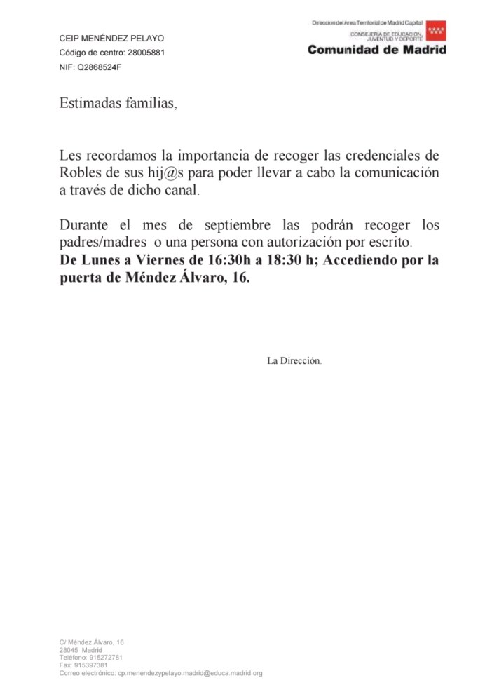 Esperamos que os sea de utilidad. Recordamos la última comunicación por parte del equipo directivo con respecto a las credenciales para poder acceder a Roble: