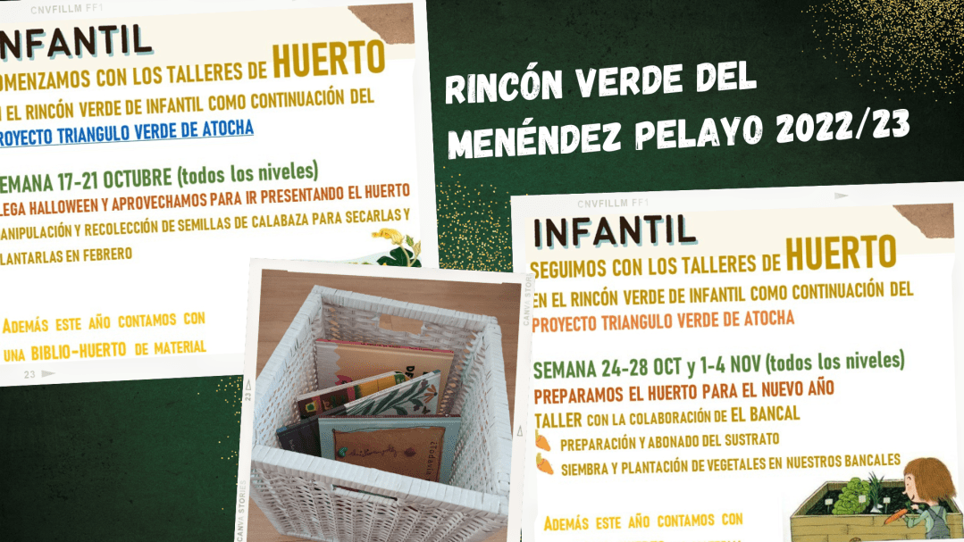 Como muchas familias sabéis, como fruto del proyecto Triángulo Verde de Atocha y gracias a la colaboración e implicación del ciclo de Infantil y el colegio, el año pasado pudimos instalar unos pequeños bancales y unos hoteles de insectos que conforman el «rincón verde del cole«.