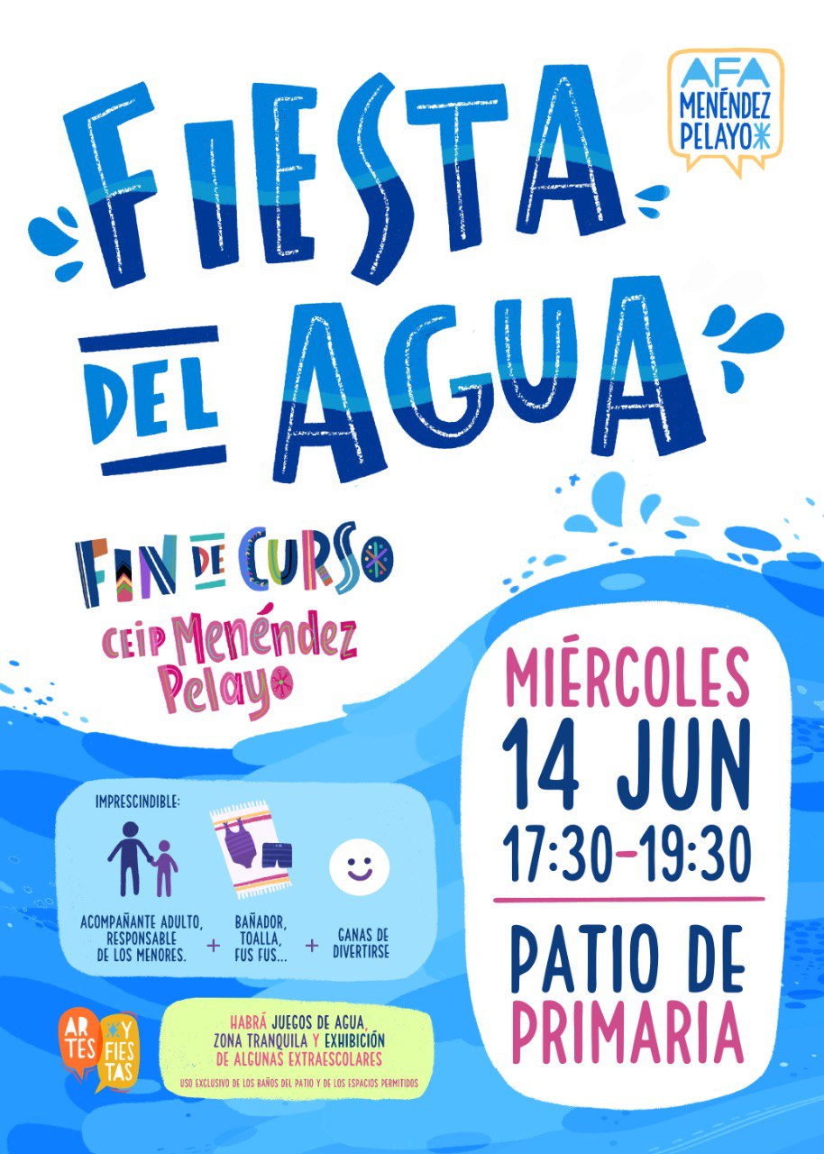 Os invitamos el próximo 14 de junio a las 17:30 h a la fabulosa fiesta del agua de fin de curso que organiza la AFA. Se celebrará en el patio de Primaria del colegio.