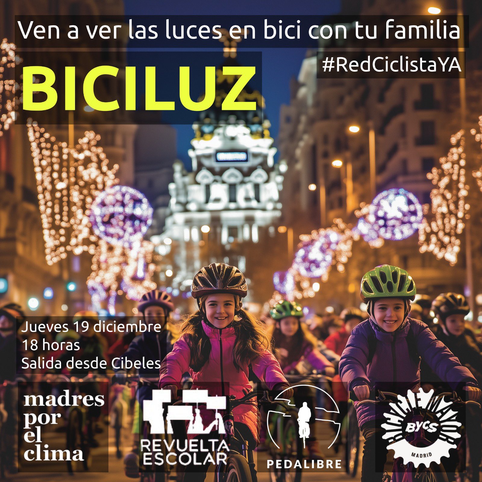Este próximo jueves 19 de diciembre a las 18h en la plaza de Cibeles participa en la convocatoria ciudadana del BICILUZ para visibilizar la importancia de la movilidad activa de la infancia en la ciudad de Madrid.
