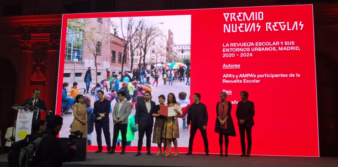 El pasado 2 de diciembre en el marco de la XIII Bienal Iberoamericana de Arquitectura y Urbanismo, celebrada este año en Lima, Perú, bajo el título “CLIMAS: Acciones para el buen vivir”, se ha entregado el premio en la categoría Nuevas Reglas a la Revuelta Escolar de Madrid.