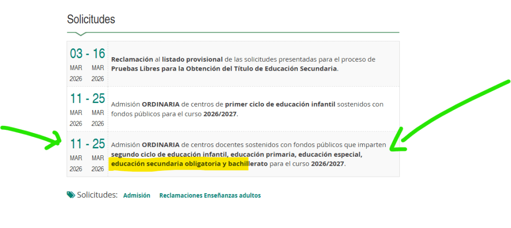 - 3 de julio de 2026: inicio del plazo de presentación de solicitudes para proceso extraordinario de admisión (si todavía no has conseguido plaza o quieres cambiar la que tienes).