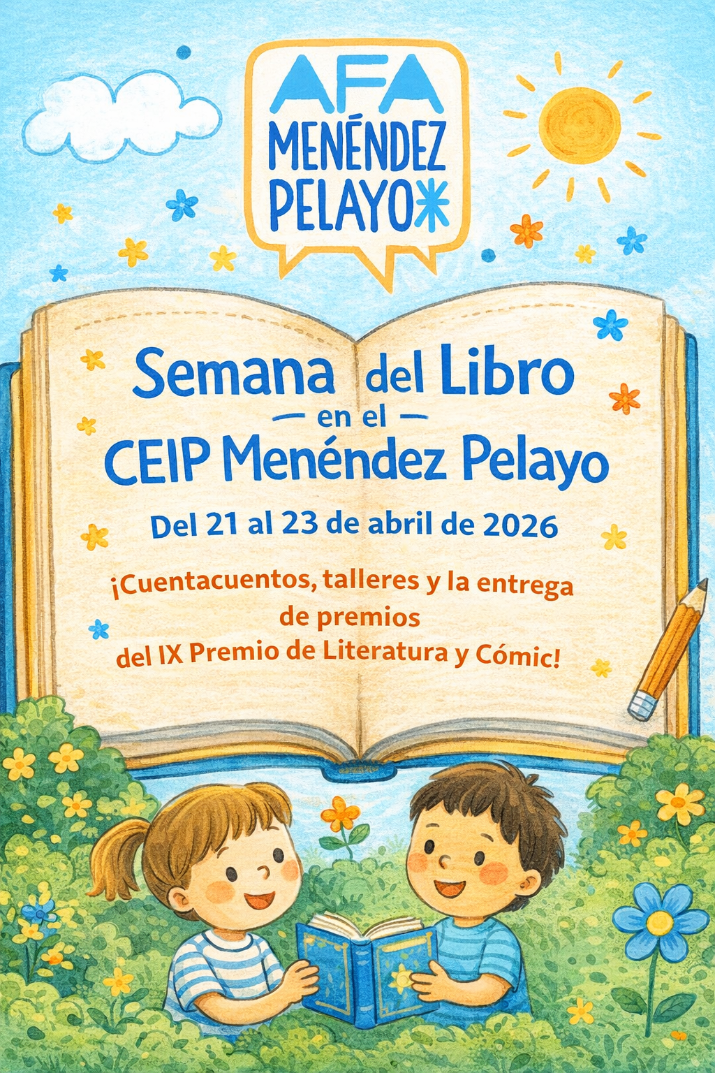 Este mes toca celebrar una de las cosas que más nos gustan: los libros. Para ello, hemos organizado diferentes actividades los días 21 y 22, culminando el 23, Día del Libro, con la entrega de premios de la IX Edición del Concurso de Literatura Infantil y Juvenil.