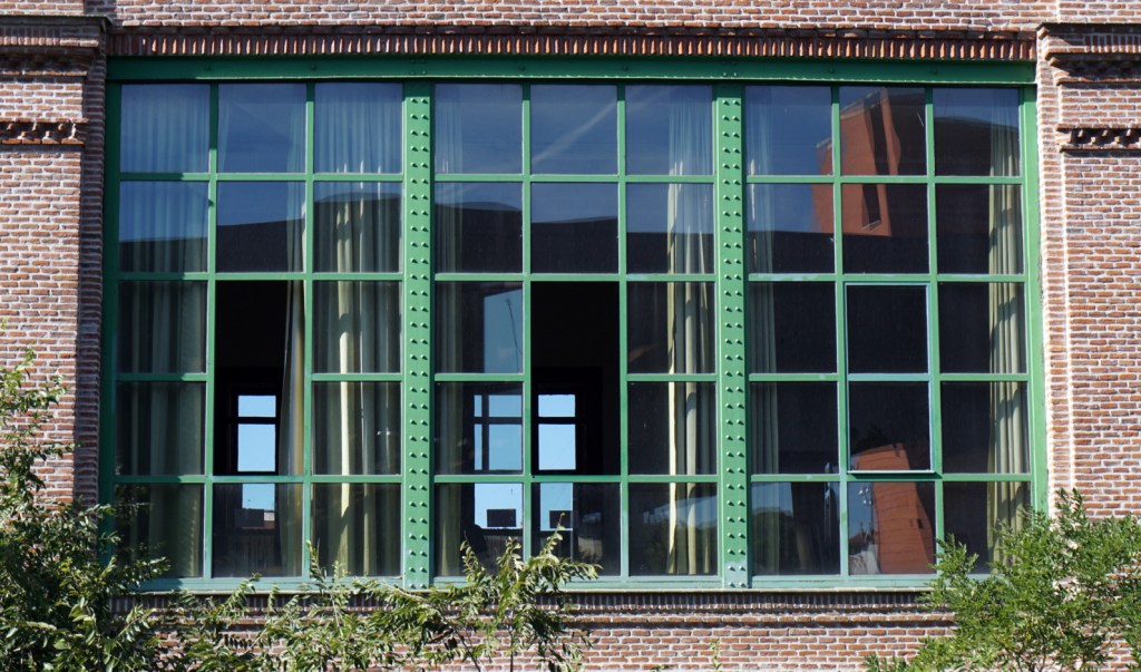 Su imponente exterior de ladrillo visto se ve subrayado por un característico alero de madera que armoniza con el color verde de barandillas, ventanas y resto de carpintería del edificio que, pese a su buscada línea funcional, presenta algunos elementos historicistas, particularmente en las fachadas.